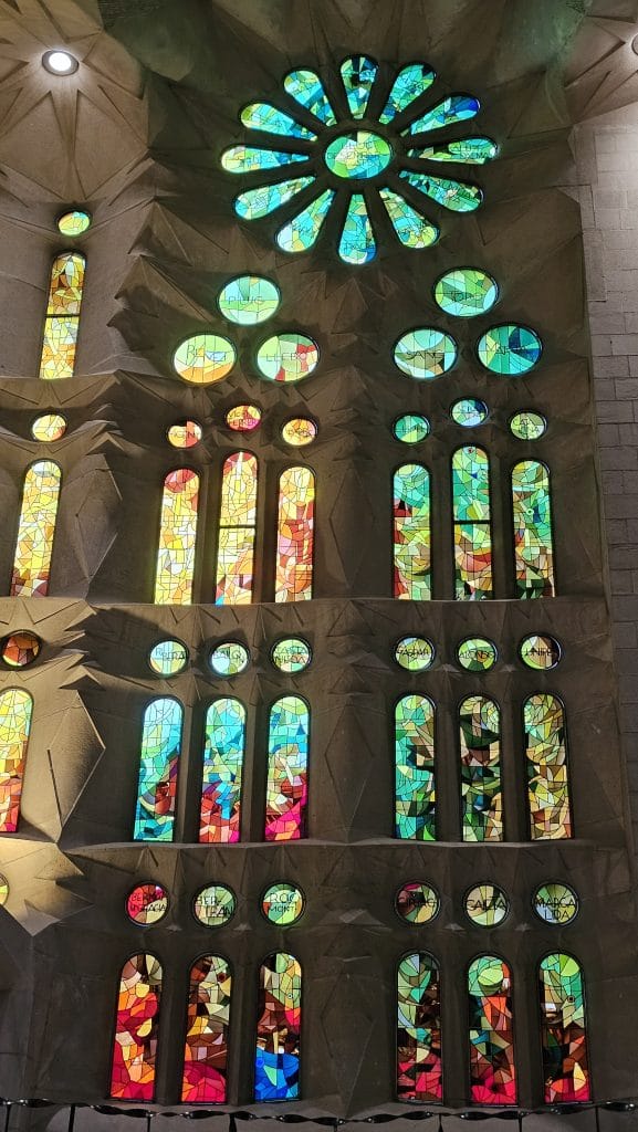Beams of filtered sunlight shine through Gaudí’s Sagrada Família stained glass windows. Each panel transforms and shifts with the changing daylight. FUN FACT: These glowing photos were captured on a mostly cloudy day!
